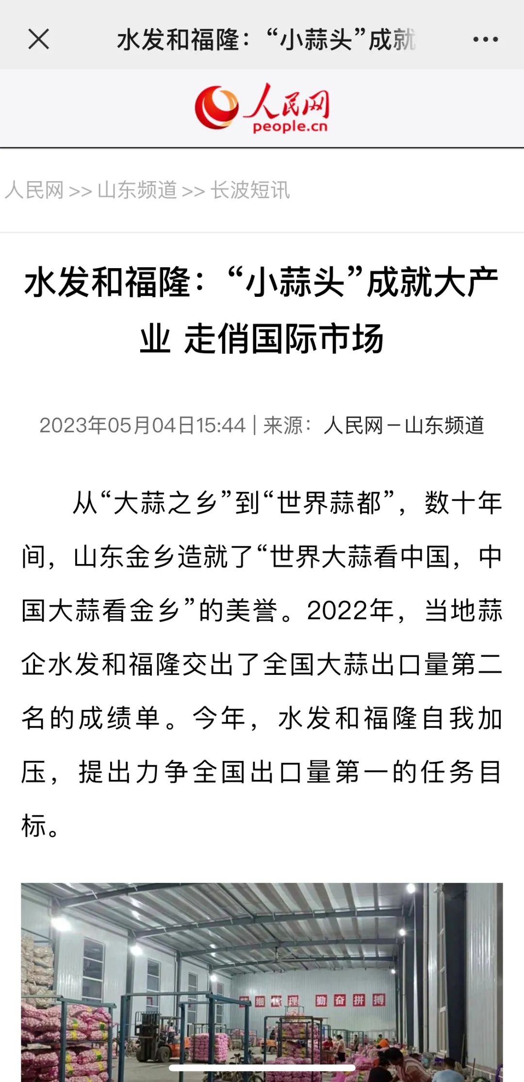 從“大蒜之鄉”到“世界蒜都”,數十年間,山東金鄉造就了“世界大蒜看中國,中國大蒜看金鄉”的美譽。2022年,當地蒜企水發和福隆交出了全國大蒜出口量第二名的成績單。今年,水發和福隆自我加壓,提出力爭全國出口量第一的任務目標。