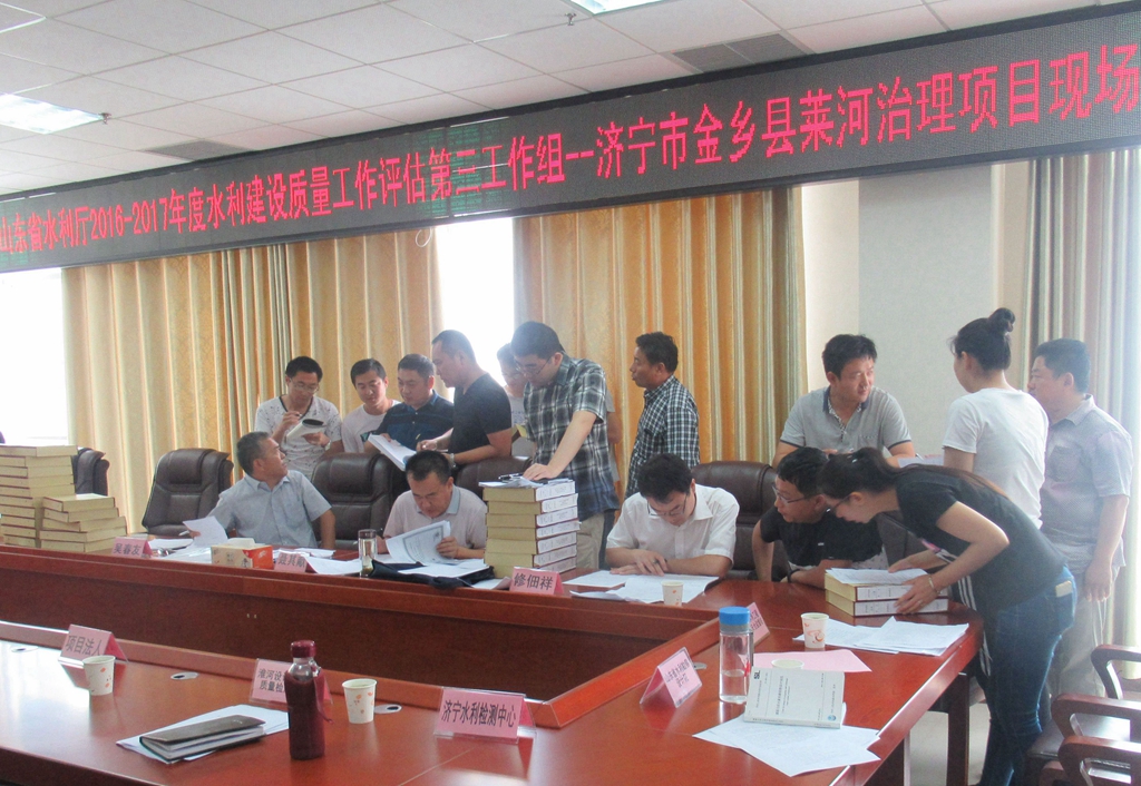 6月13日~14日,山東省水利廳2016-2017年度水利建設質量評估組一行在山東省海河流域水利管理局工作組長吳春友的帶領下到濟寧市金鄉縣萊河治理項目開展水利建設質量現場核查工作,山東水控發展集團有限公司總工程師王勝利,濟寧市水利局基建站副站長翟小兵,濟寧市水利工程建設質量與安全監督站、山東水利建設集團有限公司萊河項目部等單位負責人陪同核查。