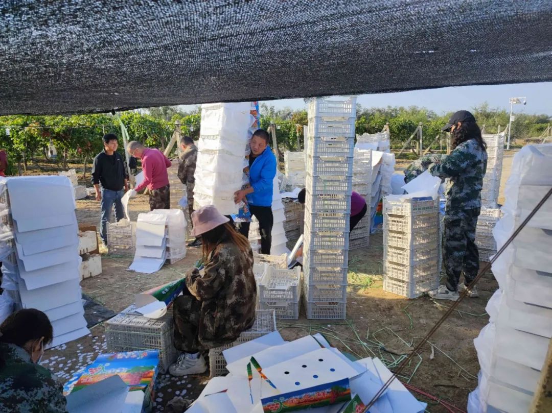 ▲雙節(jié)期間,雙河水發(fā)集團權屬果蔬公司全體員工在新疆生產(chǎn)建設兵團第五師雙河市葡萄基地搶收葡萄。